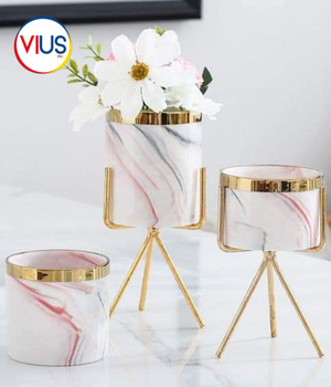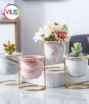 Khung xi mạ PVD màu vàng Gold đựng chậu gốm