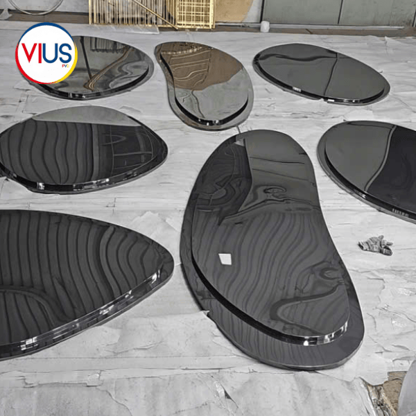 Chúng tôi cung cấp dịch vụ gia công inox đen bóng với sự cam kết về độ phủ đồng đều 100%. Nhờ hệ thống lò mạ công suất lớn, Việt Mỹ có thể xử lý các sản phẩm có bề mặt phức tạp hoặc kích thước lớn mà vẫn đảm bảo sắc đen sâu thẳm, đồng nhất trên mọi góc cạnh.